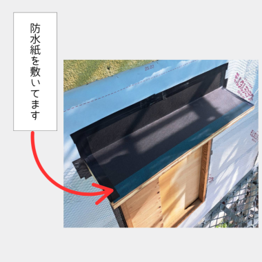 大工さんが作ってくれた庇屋根にまずは防水紙を敷きます💡