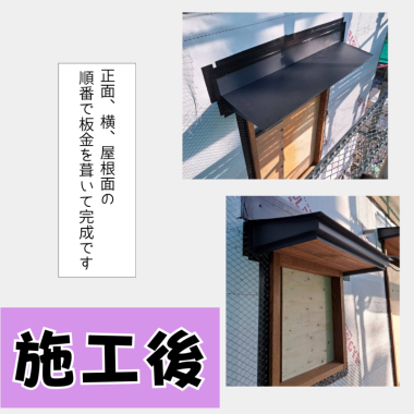 その後、正面▶︎横▶︎屋根面 の順番で板金を葺いて完成です✨