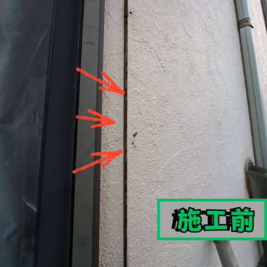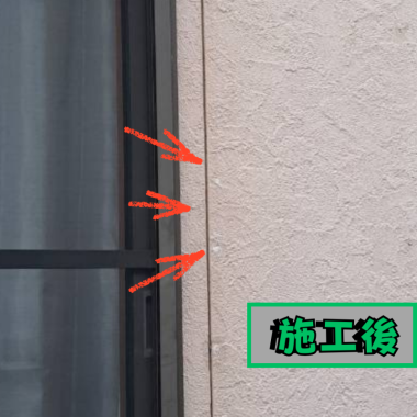近い色のコーキングで埋めるという工事でした。
