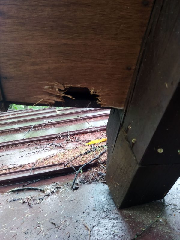 軒天の際にできたキツツキ穴を修繕いたしました。