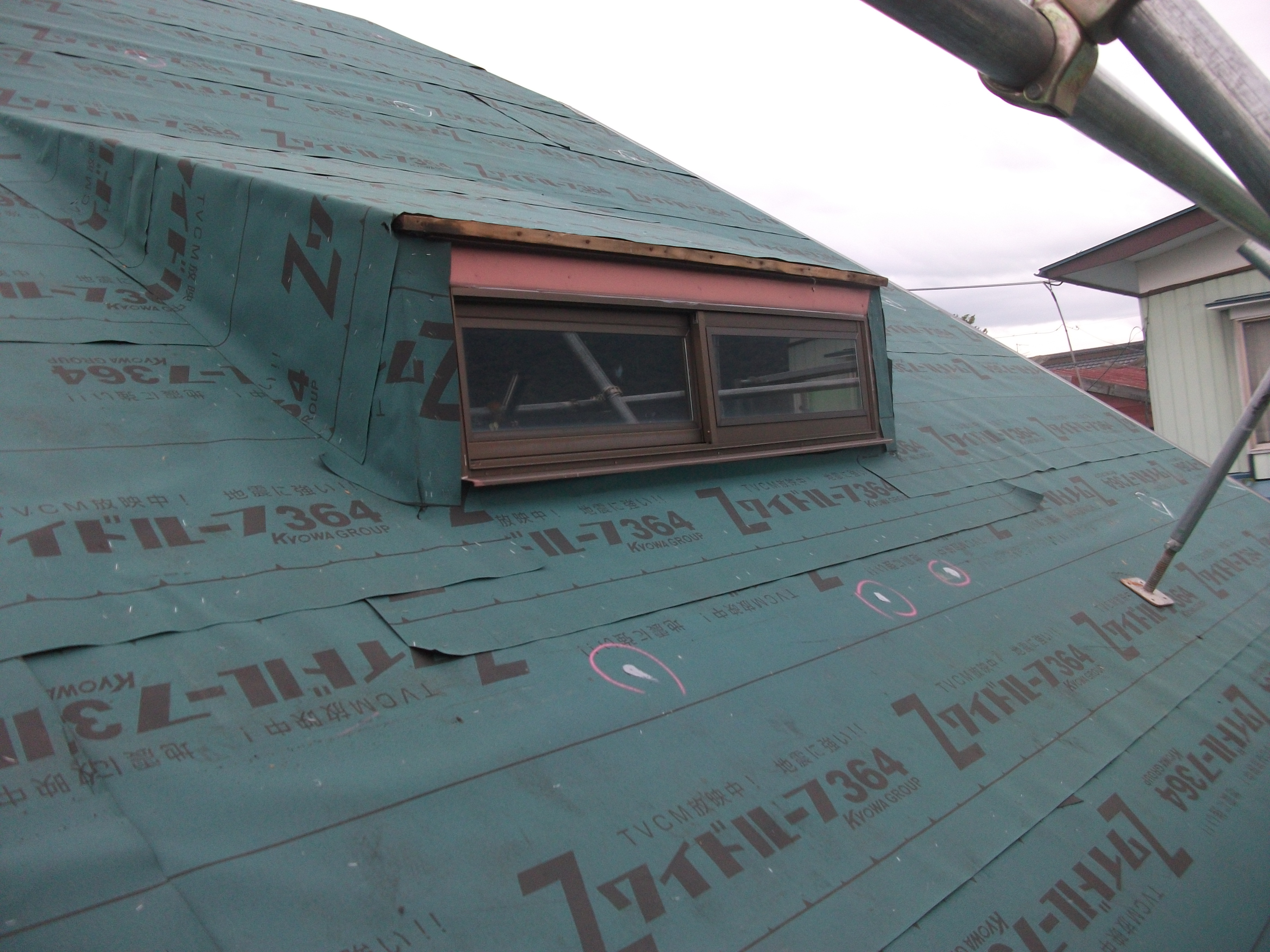 防水シートを貼っています