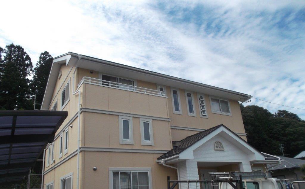 伊那市 住宅雨とよ取付(ホワイト色)イエロー系の外壁に合います