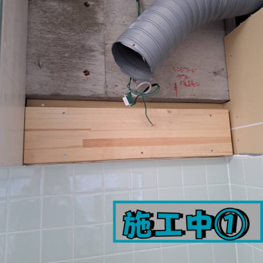 見えてしまう分はキッチンパネルを貼らせていただきました👷